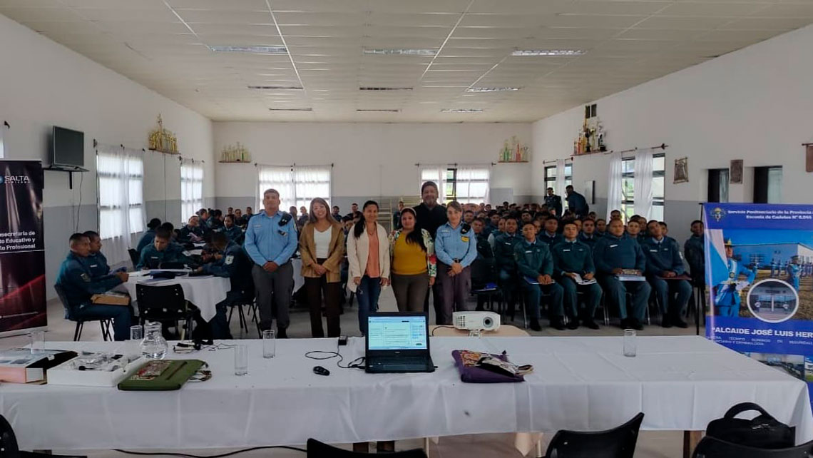 La actividad se desarrolló en la Escuela de Cadetes Nº 6044 “Alcaide José Luis Herrera”, ubicada en la localidad de Cerrillos, y contó con la participación de 120 estudiantes de 1°, 2° y 3° año en formación para el servicio penitenciario.