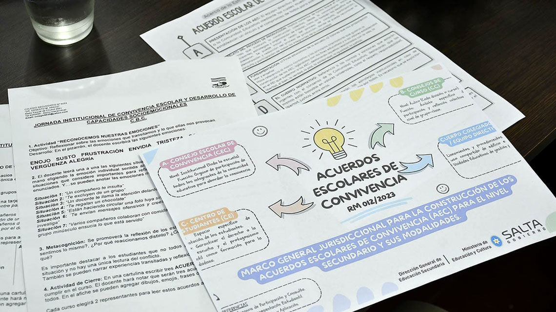 Estas jornadas se articulan directamente con lo dispuesto por la Resolución Ministerial N° 115/2026 que establece un protocolo obligatorio de aplicación inmediata en todos los niveles y modalidades para la prevención, detección y abordaje del bullying y el ciberacoso. Mientras que las jornadas de Convivencia Escolar promueven la construcción colectiva de acuerdos y el desarrollo de capacidades socioemocionales como estrategia de prevención primaria, el protocolo de la RM 115/26 brinda a las instituciones herramientas claras y visibles para actuar de manera oportuna, coordinada y respetuosa de los derechos de niños, niñas y adolescentes, con un eje central en la corresponsabilidad familiar y la actuación inmediata y obligatoria ante situaciones de acoso. Ambas normas se complementan para fortalecer la convivencia democrática y proteger las trayectorias educativas en las escuelas salteñas.