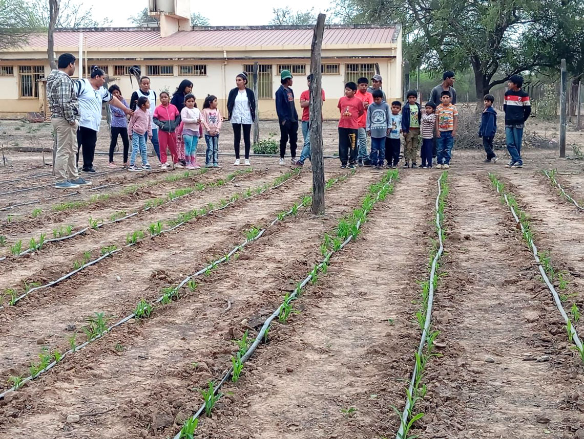 Actualmente, 45 huertas educativas se encuentran activas, con sistemas de riego por goteo ya instalados en varios establecimientos, lo que asegura la sustentabilidad de los cultivos en contextos de sequía.