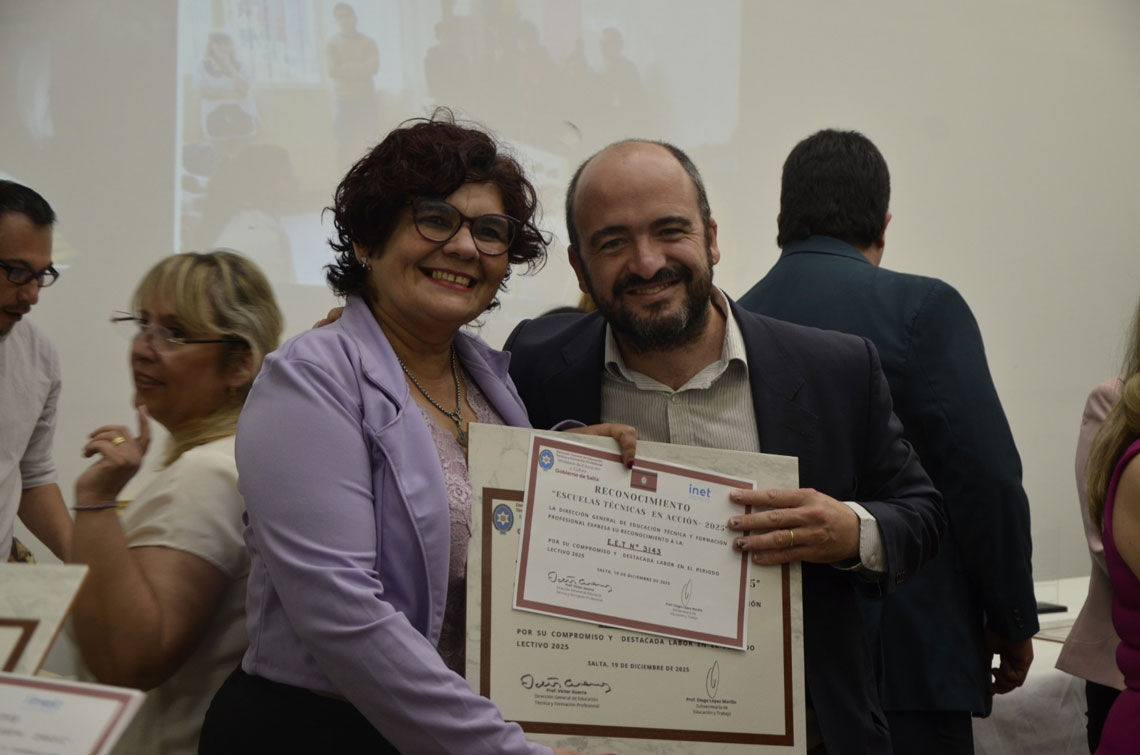 También se homenajeó a los actores del sector privado, a los Intendentes y representantes municipales de Cachi, Rosario de Lerma y Capital, quienes brindan información, experiencia y conocimientos para mejorar el trabajo, que este se realice de manera más efectiva, colaborativa, visible y alineada con las necesidades de las escuelas técnicas mediante convenios de cooperación.
